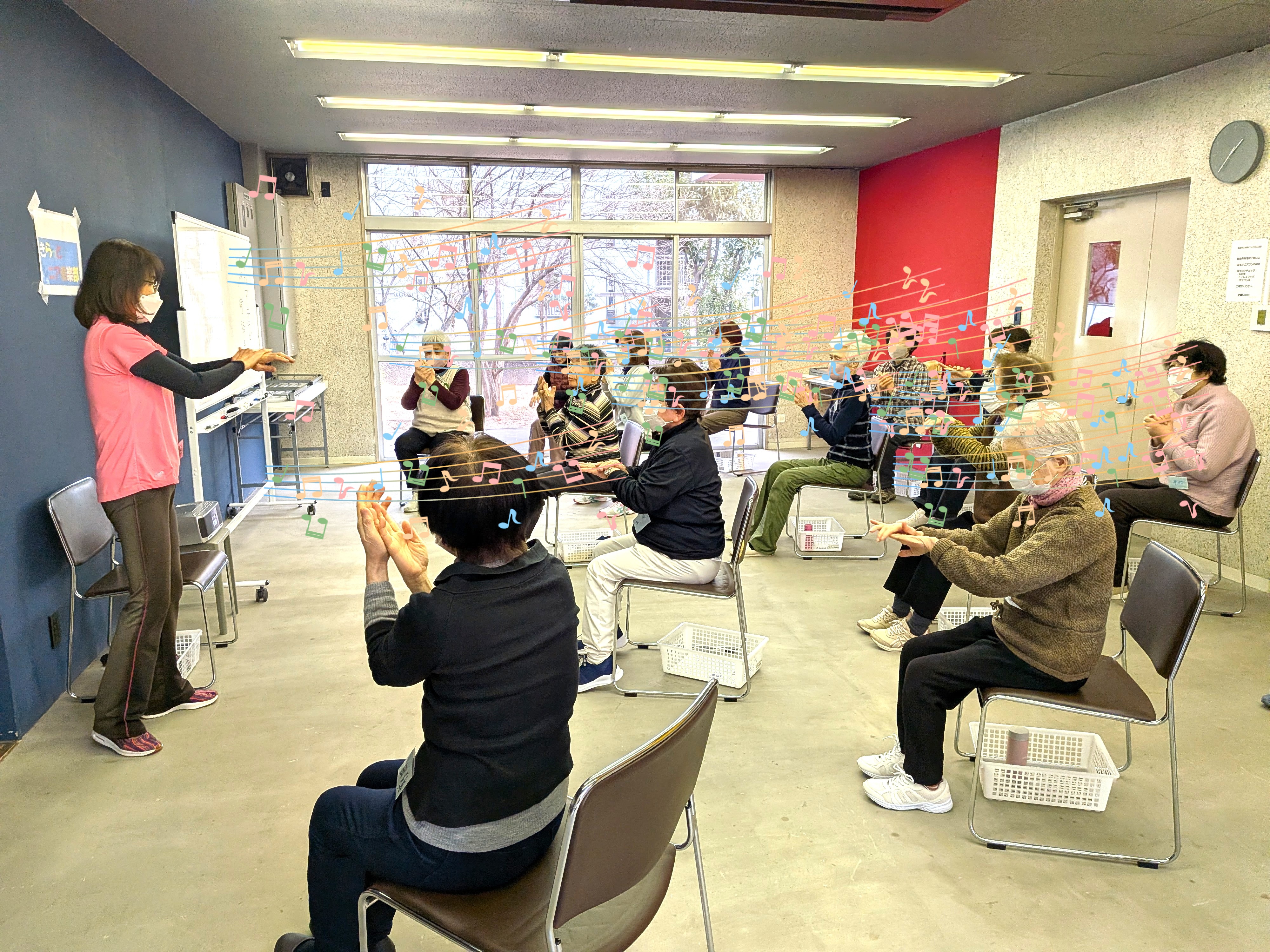 体操はじっくりと体を慣らした後、アップテンポな曲を流してレッツエンジョイ♪