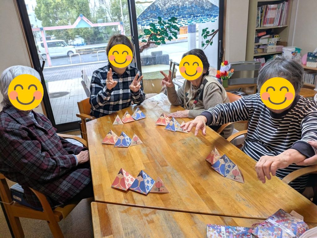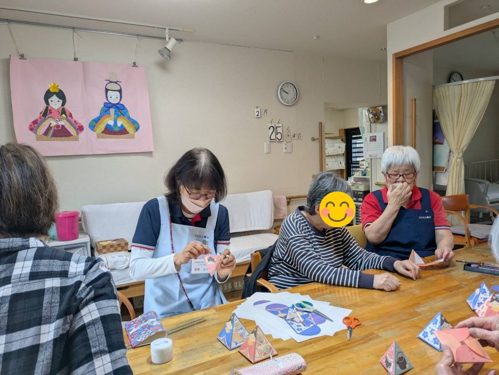 日常の活動少し早いですが、利用者さんにひな飾りを作っていただきました。